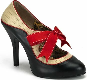 4 1/2″ Heel with a 1/2″ Concealed Platform and Two-Tone Pump with Perforated Holes, Red Piping & Bow (TEMPT-27 )