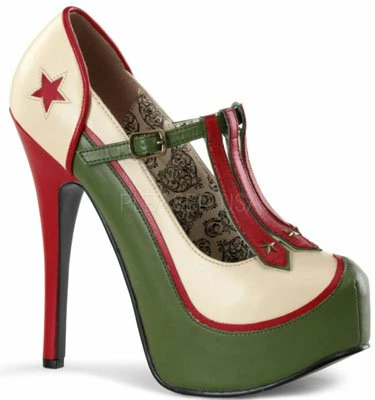 5 3/4″ (14.6cm) Heel, 1 3/4″ (4.5cm) Concealed Platform Military Themed T-Strap Pump (TEEZE-43)
