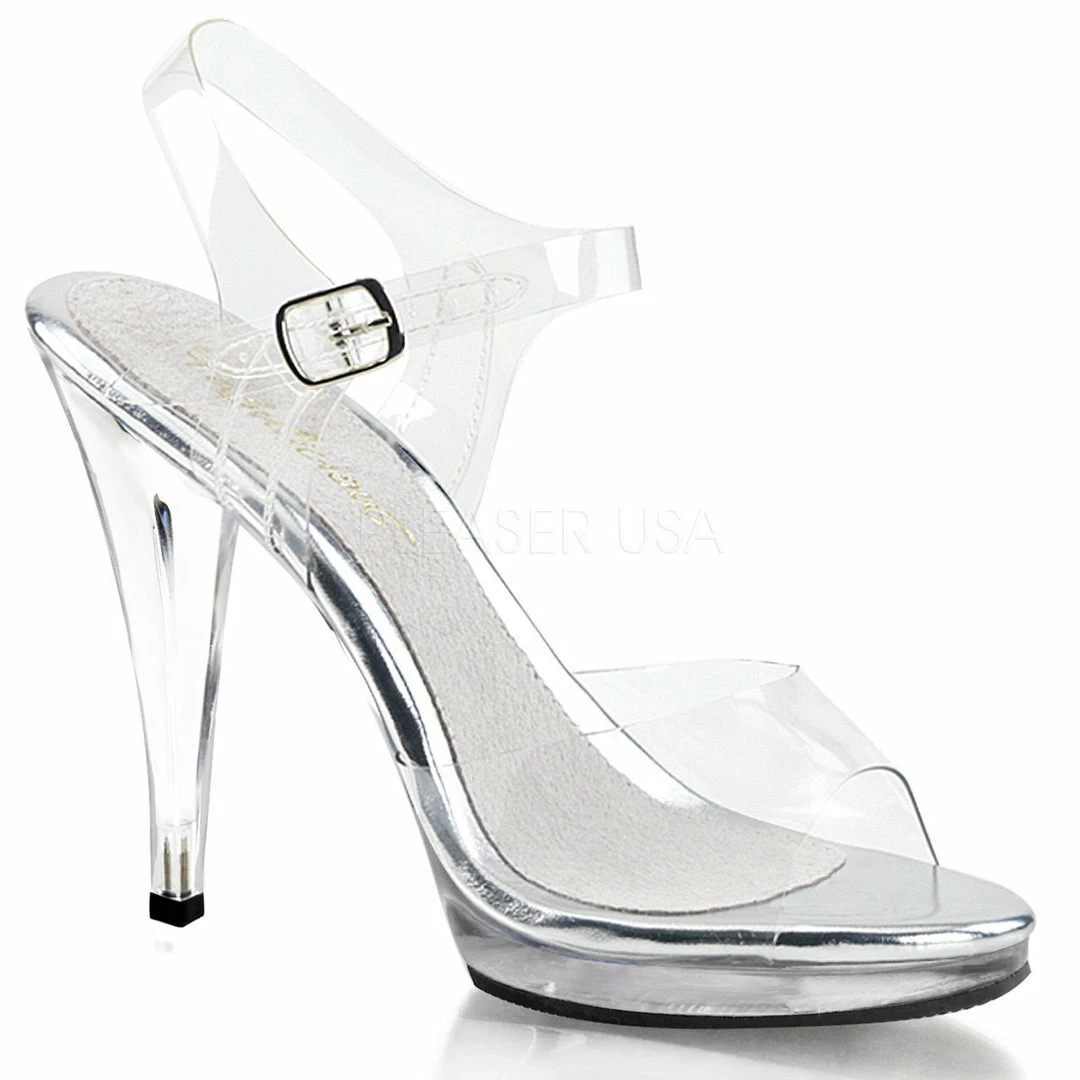 4 1/2″ Stiletto Clear Heel mini-platform with Ankle Strap with a 1/2″ (1.3cm) Platform (FLAIR-408)