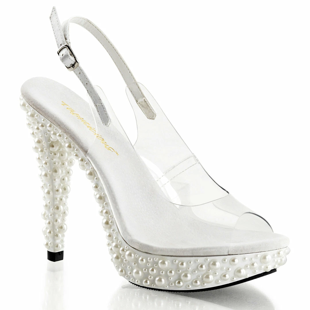 5″ Heel, 1″ PF Peep Toe Slingback Sandal Featuring Soft TPU Upper Material & Multi-Sized Faux Pearls Covering Entire Bottom (COCKTAIL-518 Final Sale)