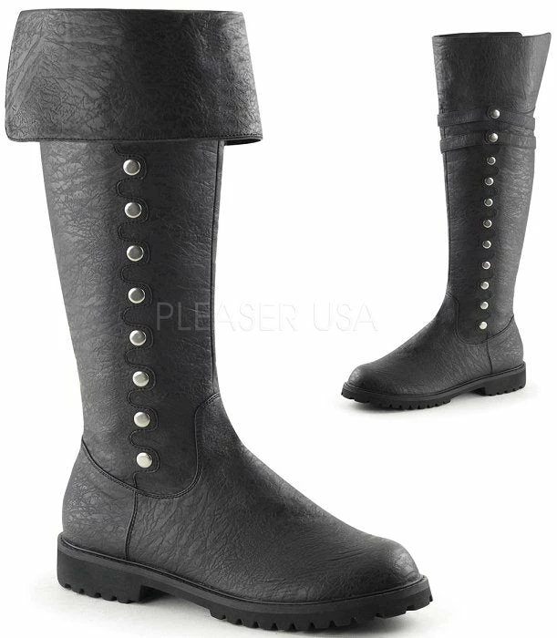 1 1/2″ (3.8cm) Men’s Cuffed Knee High Boot w/ Faux Button Detail Down the Side, 2/3 Inner Side Zipper (GOTHAM-120)