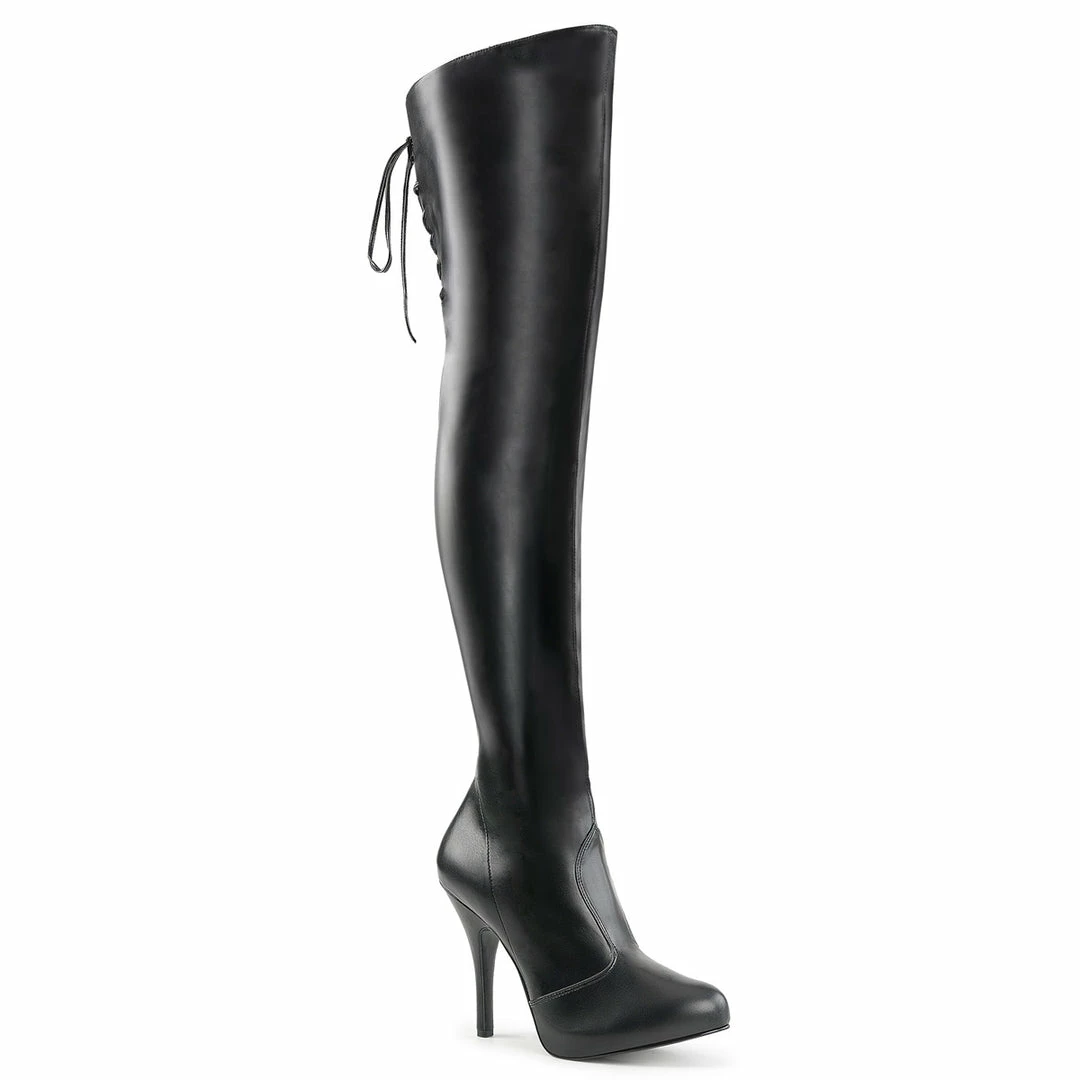 5″(12.7cm) Heel, 1/2″(1.3cm) Platform Thigh Boot with Lacing Detail At The Rear, Featuring Full-Length Inside Zip Closure