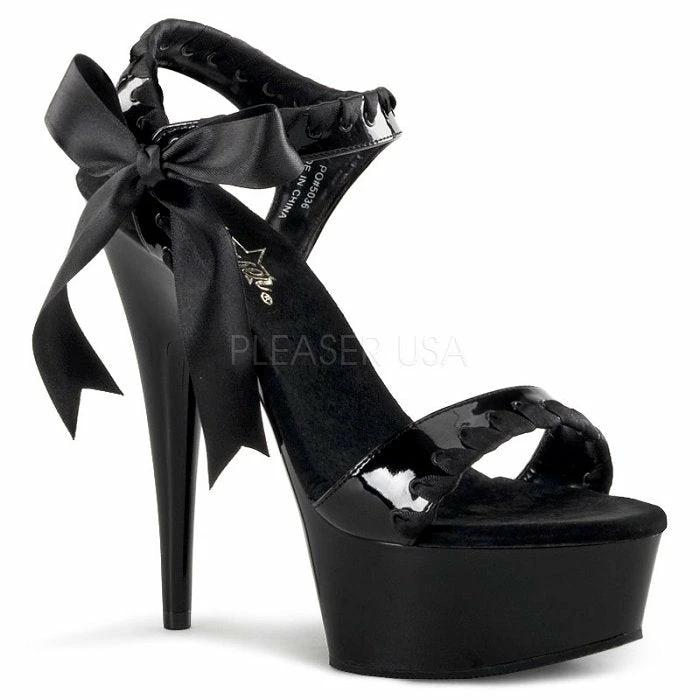6″ Stiletto Heel Ankle Strap Mid-Platform Sandal with contrasting color ribbon detail and satin bow tie side (Delight-615)