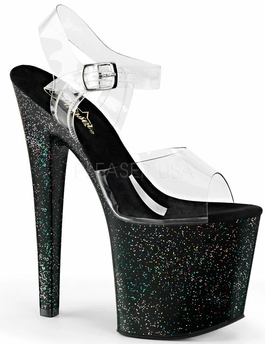 7 1/2″ (19.1cm) Heel, 3 1/2″ (8.9cm) Platform Ankle Strap Sandal Featuring Mini Iridescent Glitter on Entire Bottom (TABOO-708MG)