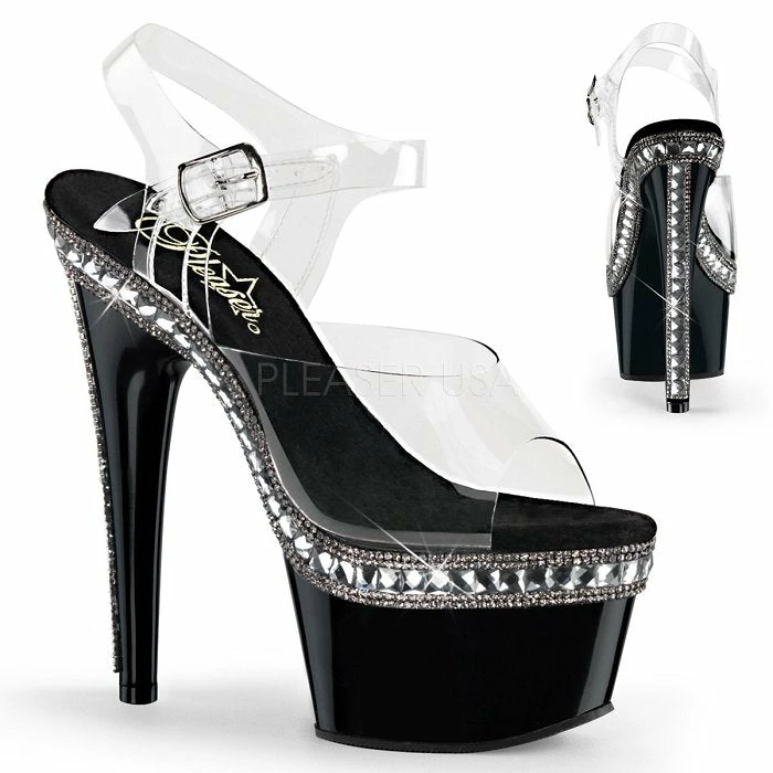 7″ (17.8cm) Stiletto Heel, 2 3/4″ (7cm) Platform Ankle Strap Sandal Featuring Rhinestone Embellishment on the Platform & Stiletto Heel (ADORE-708RS-1)