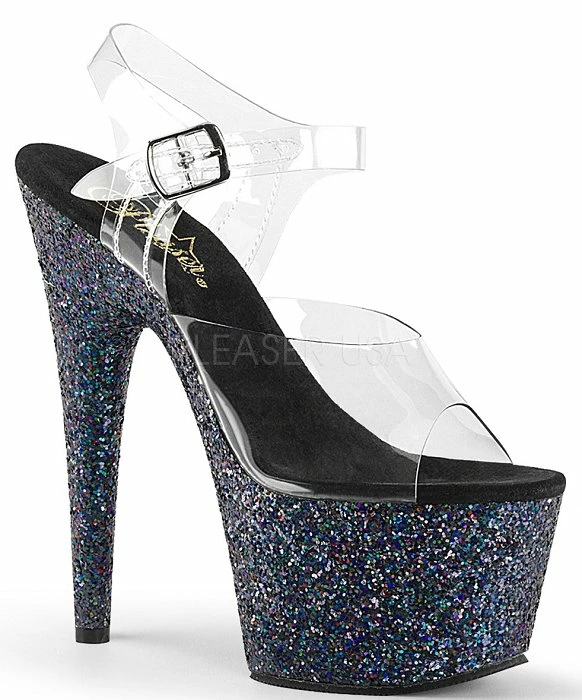 7″ (17.8cm) Stiletto Heel, 2 3/4″ (7cm) Platform Ankle Strap Sandal Featuring Holographic Glitter Covering Entire Platform (ADORE-708LG)