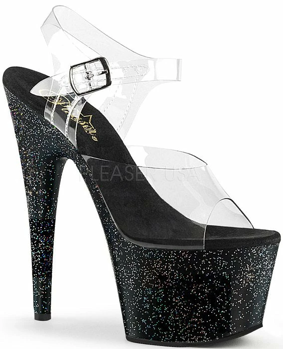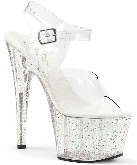 7″ (17.8cm) Heel, Ankle Strap Sandal Featuring Mini Iridescent Glitters on the Entire Platform Bottom with a 2 3/4″ Platform (ADORE-708MG)