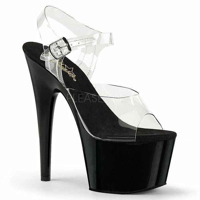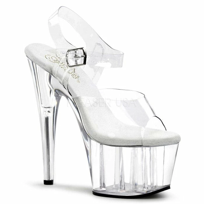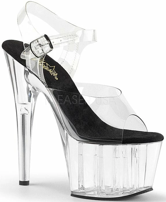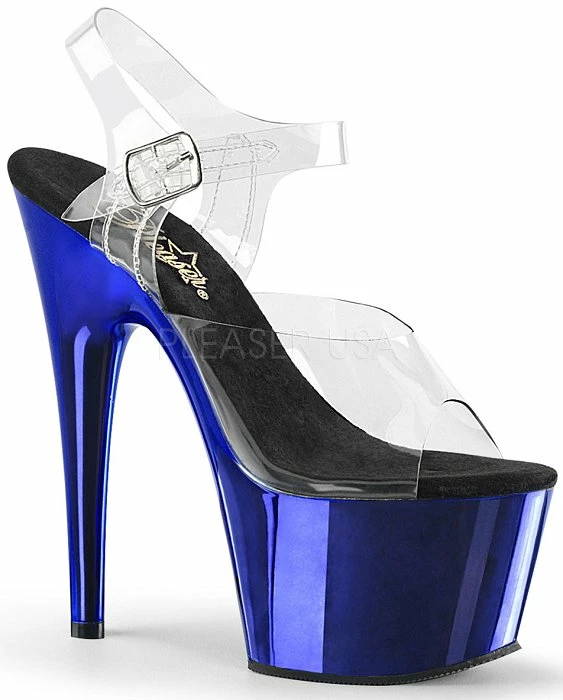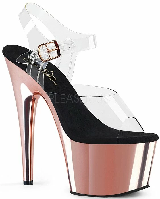 7″ (178mm) Heel, 2 3/4″ (70mm) Platform Ankle Strap Sandal w/ Chrome Plated Platform Bottom (Adore-708)