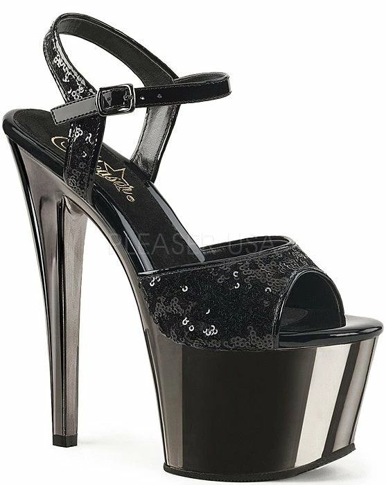7″ (17.8cm) Heel, 2 3/4″ (7cm) Chrome Platform Ankle Strap Sandalย (SKY-310SQ)