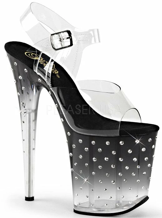 8″ Ankle Strap Sandal Featuring Tinted, Rhinestone Studded Platform Bottom with a 4″(7cm) Platform Bottom (STARDUST-808T)