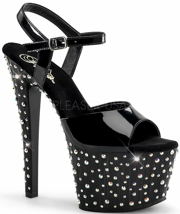 7″ (17.8cm) Heel, 2 3/4″ (7cm) Platform Ankle Strap Sandal Featuring Multi-Size Rhinestones Encrusted on the Bottom (STARDANCE-709)